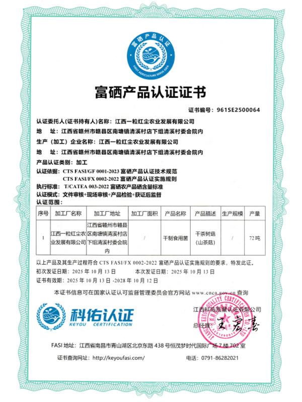 江西一粒紅塵農業(yè)發(fā)展有限公司是一家總部位于江西省贛縣的現代農業(yè)多元型企業(yè),專注于食用菌的研發(fā)、種植、深加工、貿易、研教培、農文旅等全產業(yè)鏈發(fā)展。公司秉承“健康、綠色、共享、共贏”的核心價值觀,致力于引領鄉村振興之路,旨在成為......